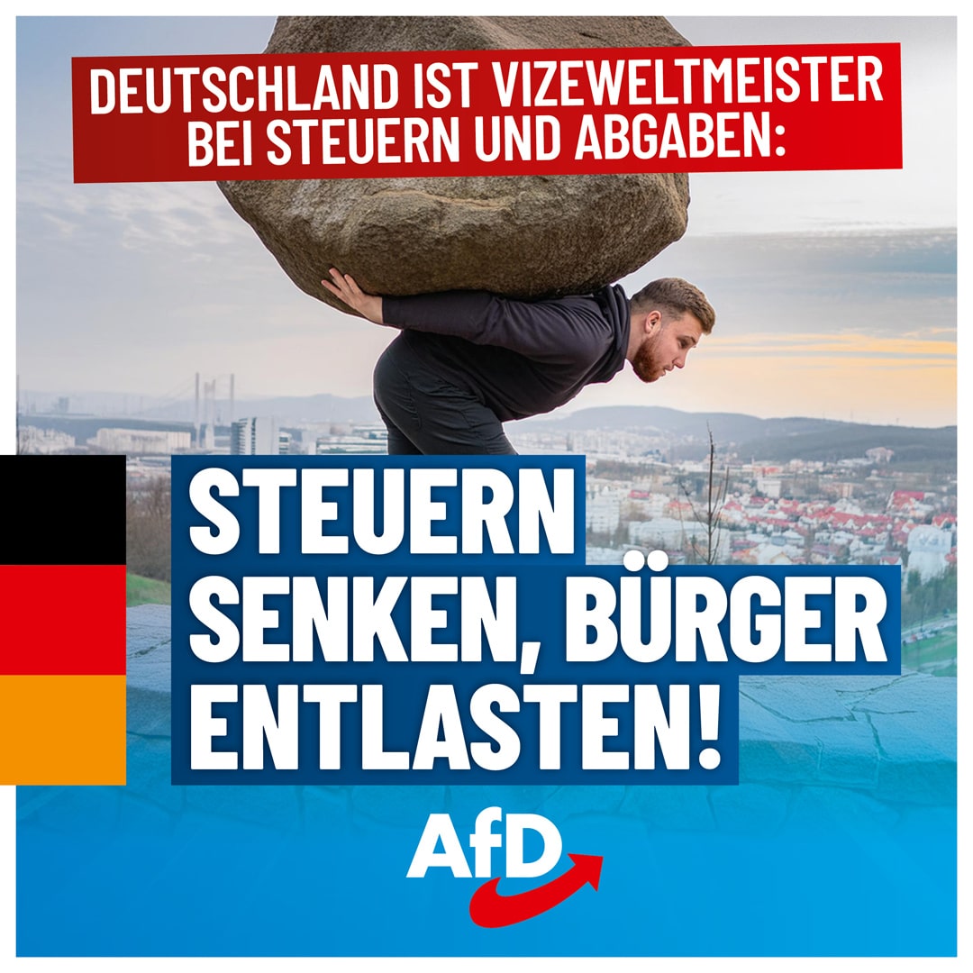 Zurück zu AfD: Trauriger Vizeweltmeister bei Steuern und Abgaben: Steuern senken, Bürger entlasten!