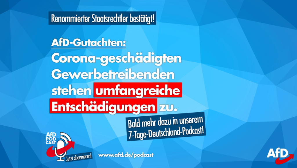 Zurück zu AfD-Gutachten: Corona-geschädigten Gewerbetreibenden stehen umfangreiche Entschädigungen zu!