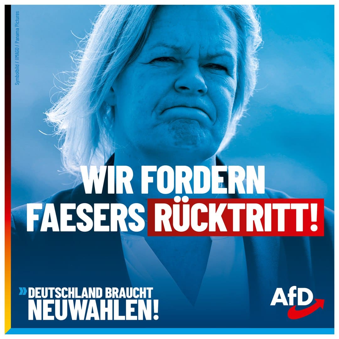 AfD: Skandale über Skandale: Wir fordern Faesers Rücktritt!