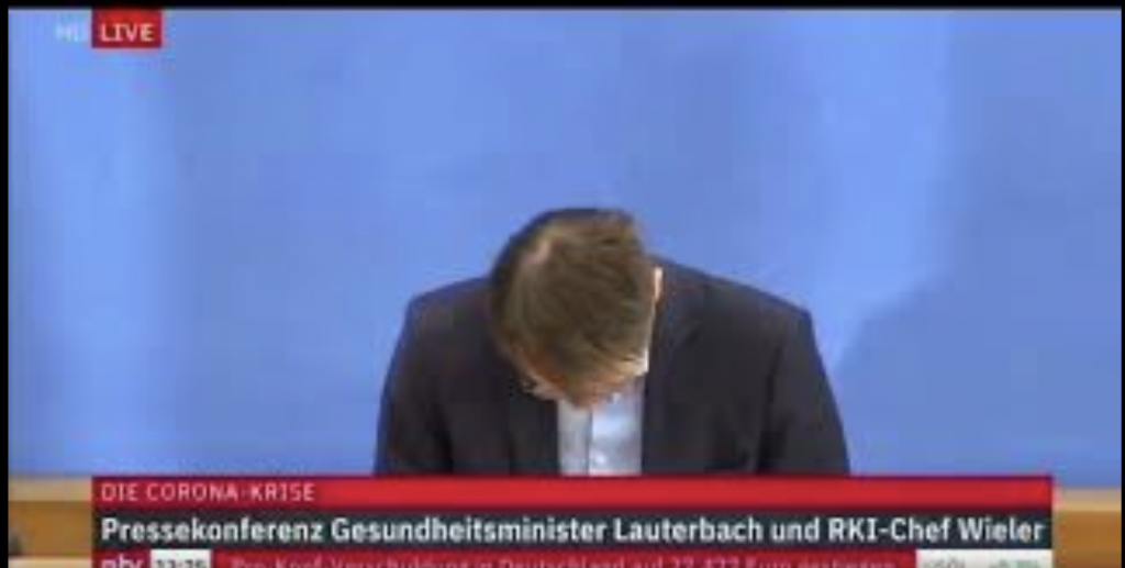 Karl Lauterbach, schlafend während der Bundespressekonferenz (2021)