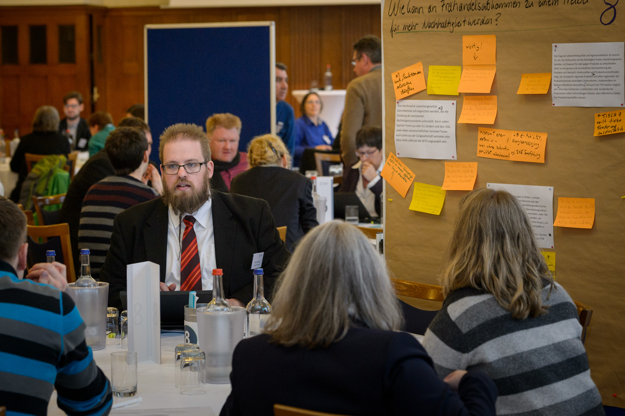 Diskussionsrunde einer Bürgerkonferenz zum Dialogforum Freihandel. Bild: "obs/IFOK GmbH/André Wagenzik"