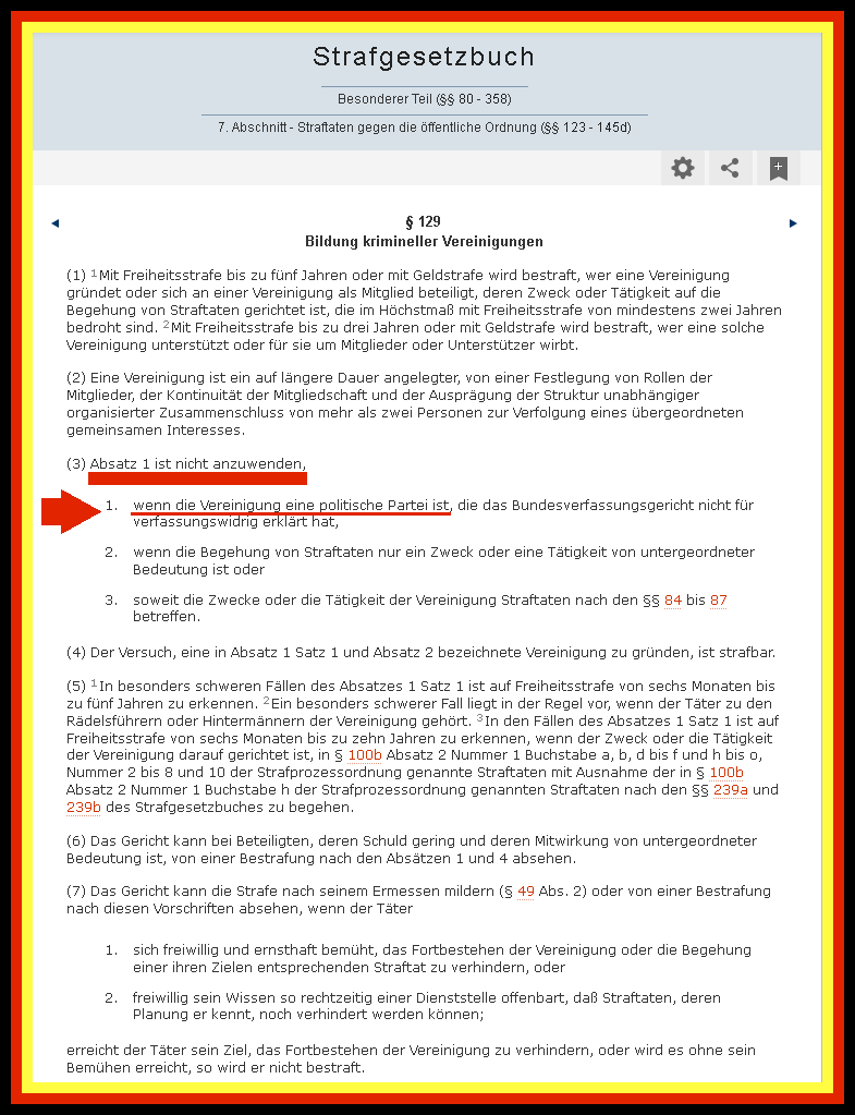 Bild: Screenshot Internetseite: "https://dejure.org/gesetze/StGB/129.html" / Eigenes Werk