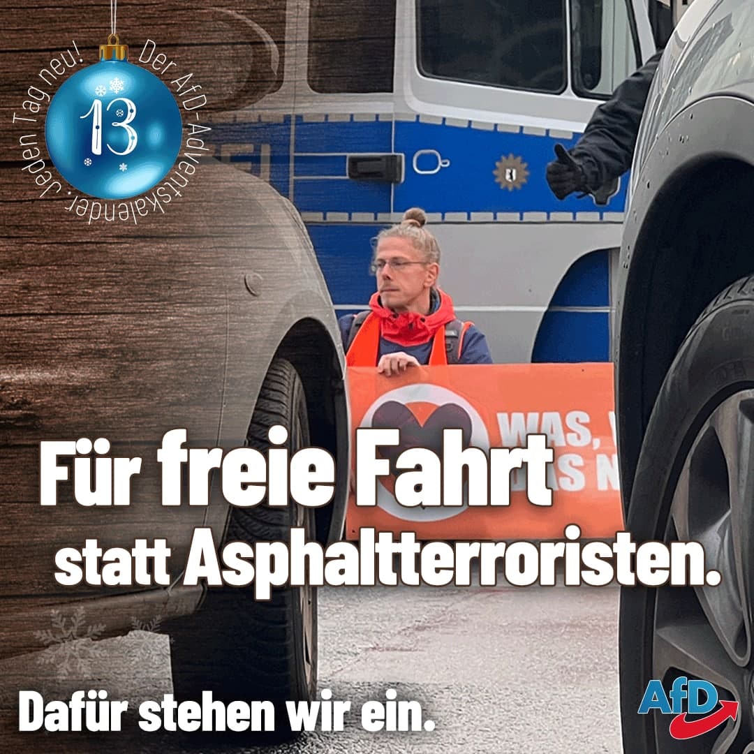 Zurück zu 13. Türchen im AfD-Adventskalender: Freie Fahrt statt Asphaltterroristen!