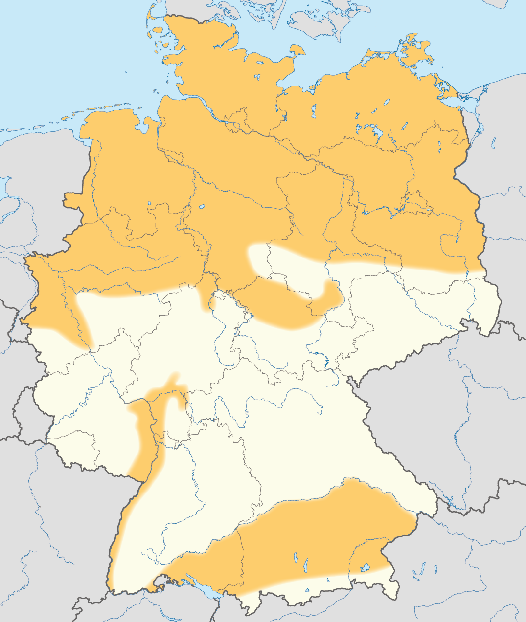 Gebiete mit Schiefergaspotenzialen in Deutschland (in orange)