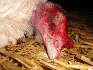 Diese sterbende Pute bekommt keine tierärztliche Versorgung. Bild: PETA