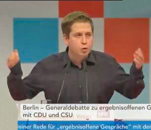 Bild: Screenshot Youtube Video: "Kevin Kühnert (Jusos) warnt vor großer Koalition auf dem SPD-Bundesparteitag in Berlin (07.12.2017)" / Eigenes Werk