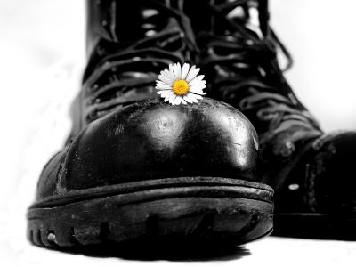Springerstiefel und Blume