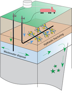 Fracking-Funktionsweise: Gelbe Punkte sind Mini-Erdbeben. Grafik: Clara Yoon