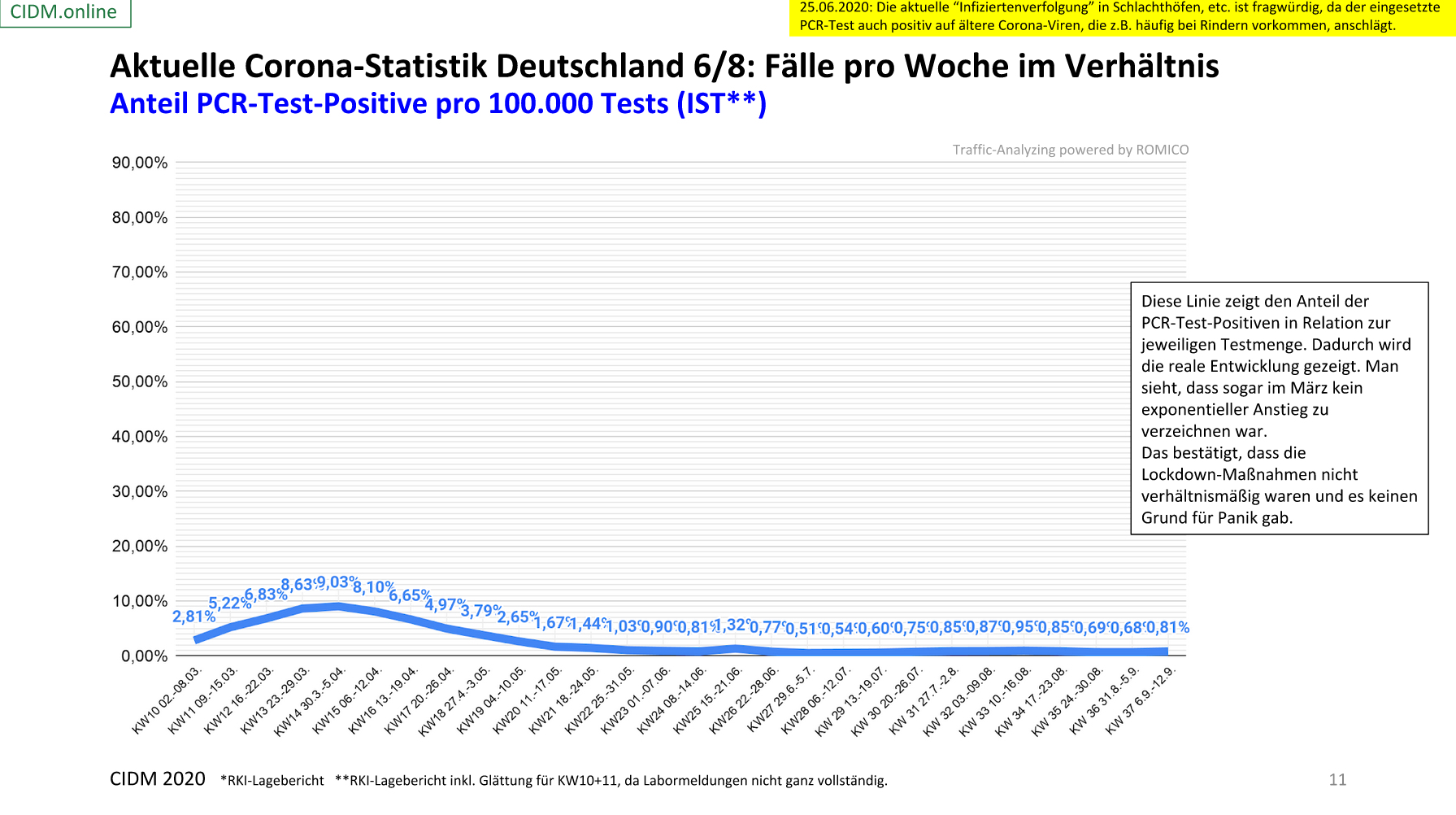 Fälle von positiven Corona-Tests pro 1.000 Tests: Keine zweite Welle zu erkennen, Stand 12.09.2020