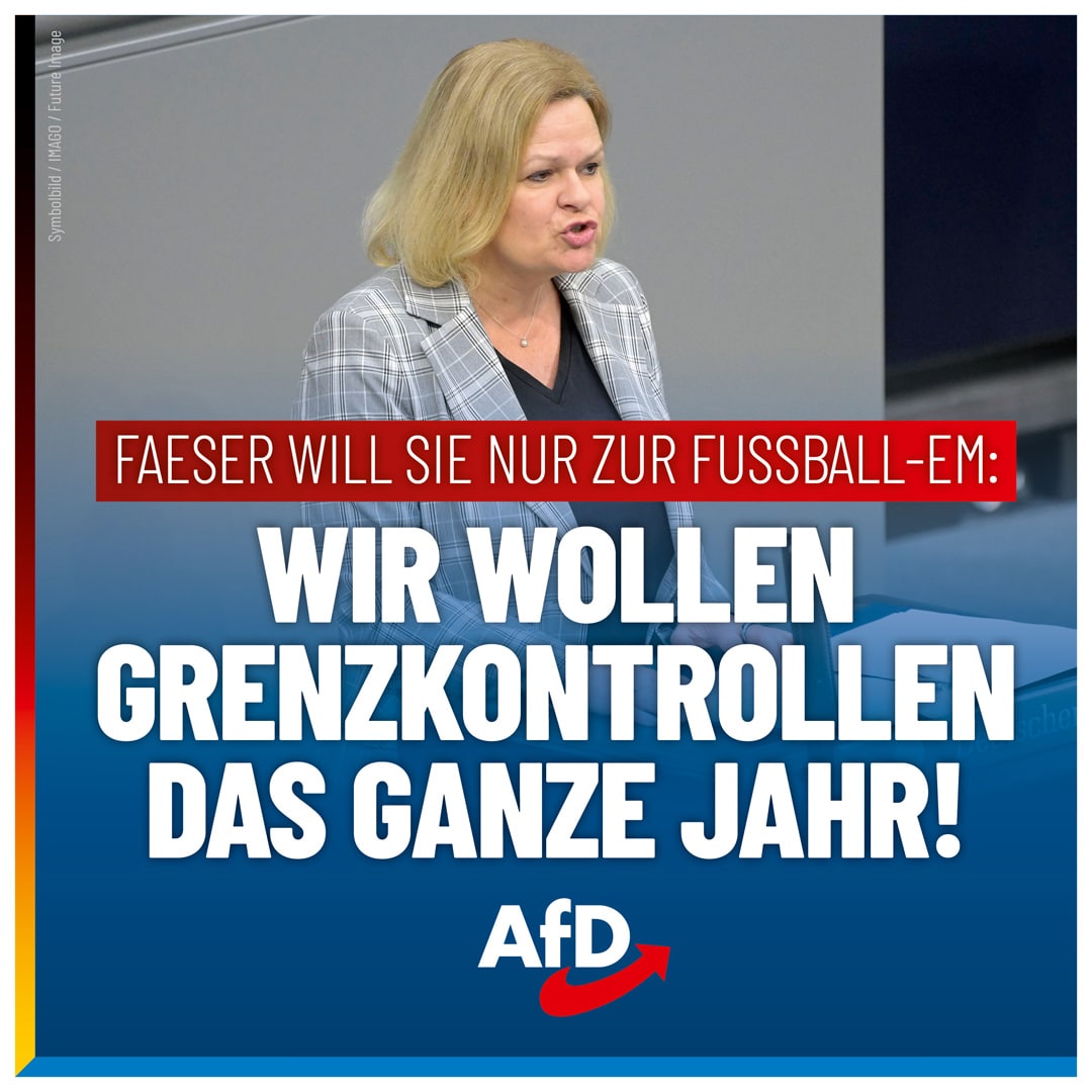 Zurück zu AfD: Faeser will Grenzkontrollen nur während der EM. Wir wollen sie IMMER!