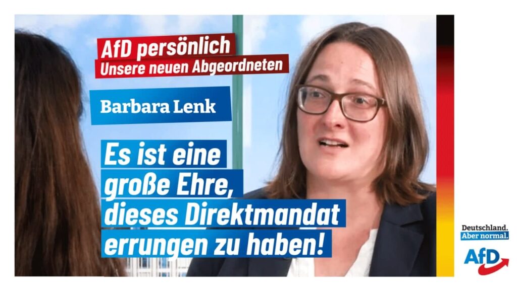 Zurück zu Barbara Lenk (AfD): Es ist eine große Ehre, dieses Direktmandat errungen zu haben!