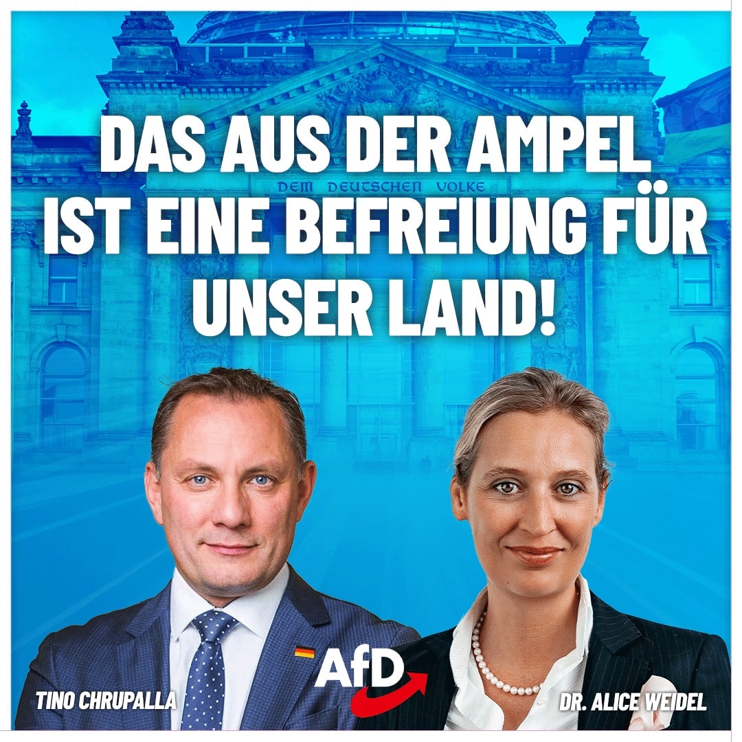 Zurück zu Dr. Alice Weidel & Tino Chrupalla: Aus der Ampel ist eine Befreiung für unser Land