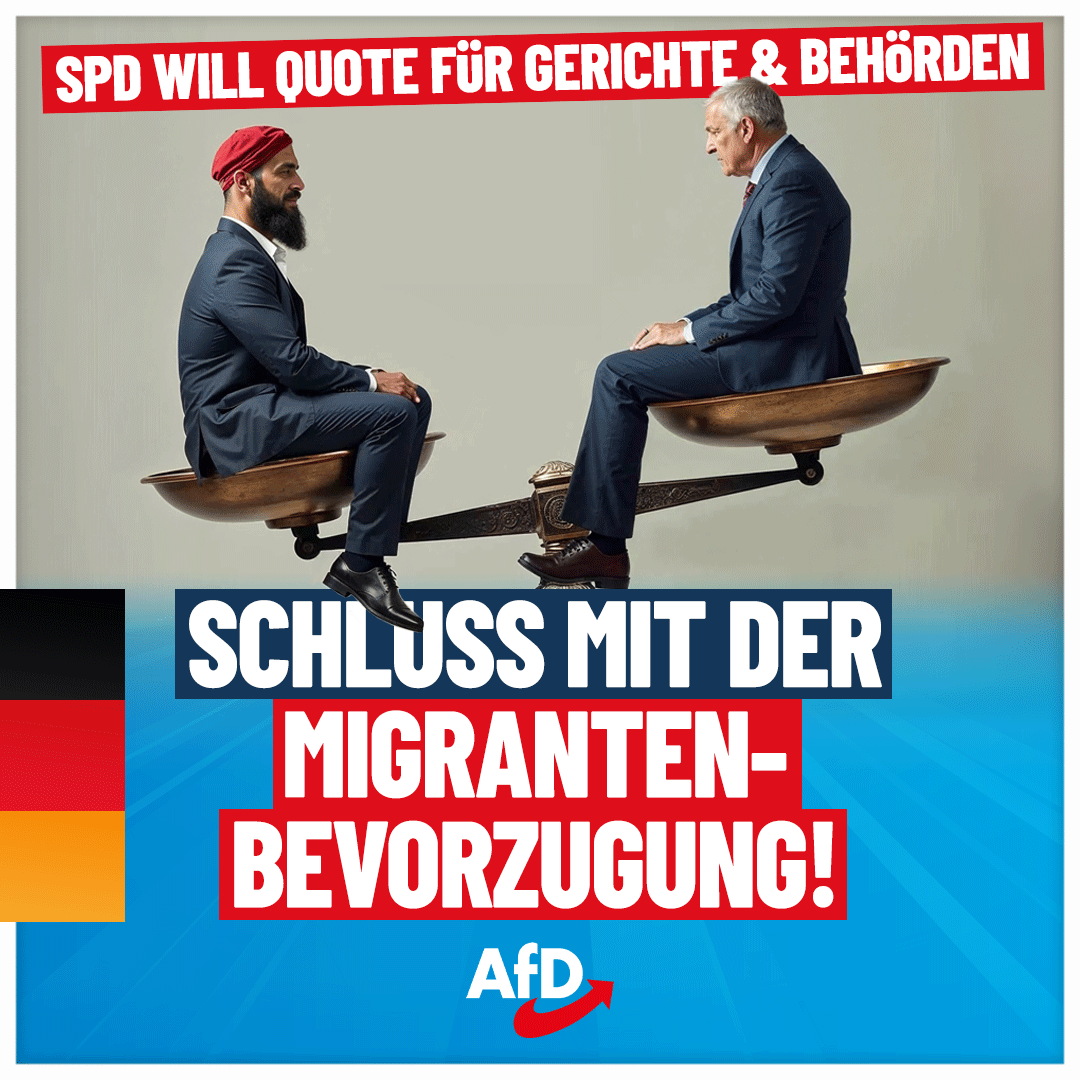 Zurück zu AfD: SPD will Migranten-Quote für Gerichte und Behörden: Schluss mit der Migranten-Bevorzugung!