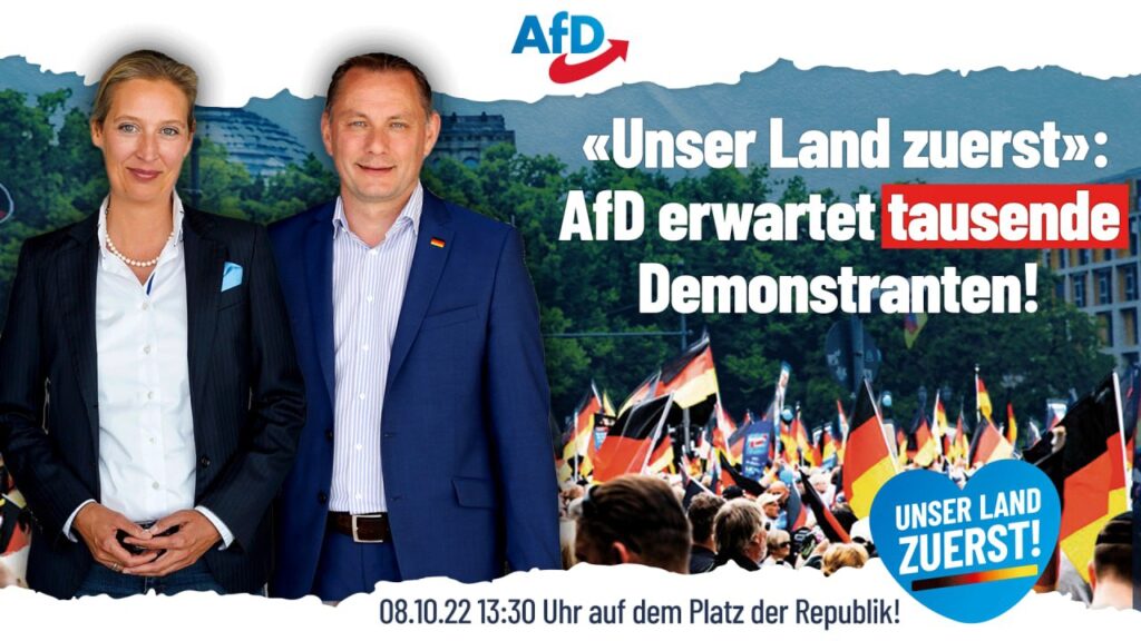 Zurück zu „Unser Land zuerst!“ – AfD rechnet mit tausenden Teilnehmern bei Kundgebung am 8. Oktober in Berlin