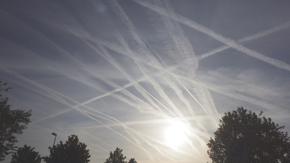 Enormes Sprühen von Chemtrails früh am Morgen über Würzburg am 11.Mai 2015 um 7 Uhr 30