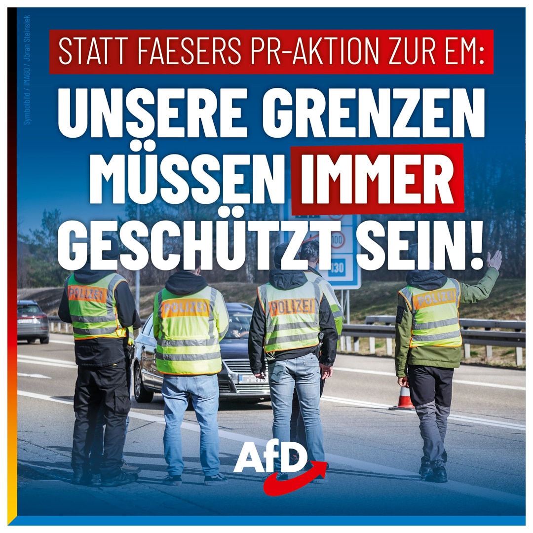 Zurück zu AfD: Statt Faesers PR-Aktion zur EM: Unsere Grenzen müssen IMMER geschützt sein!