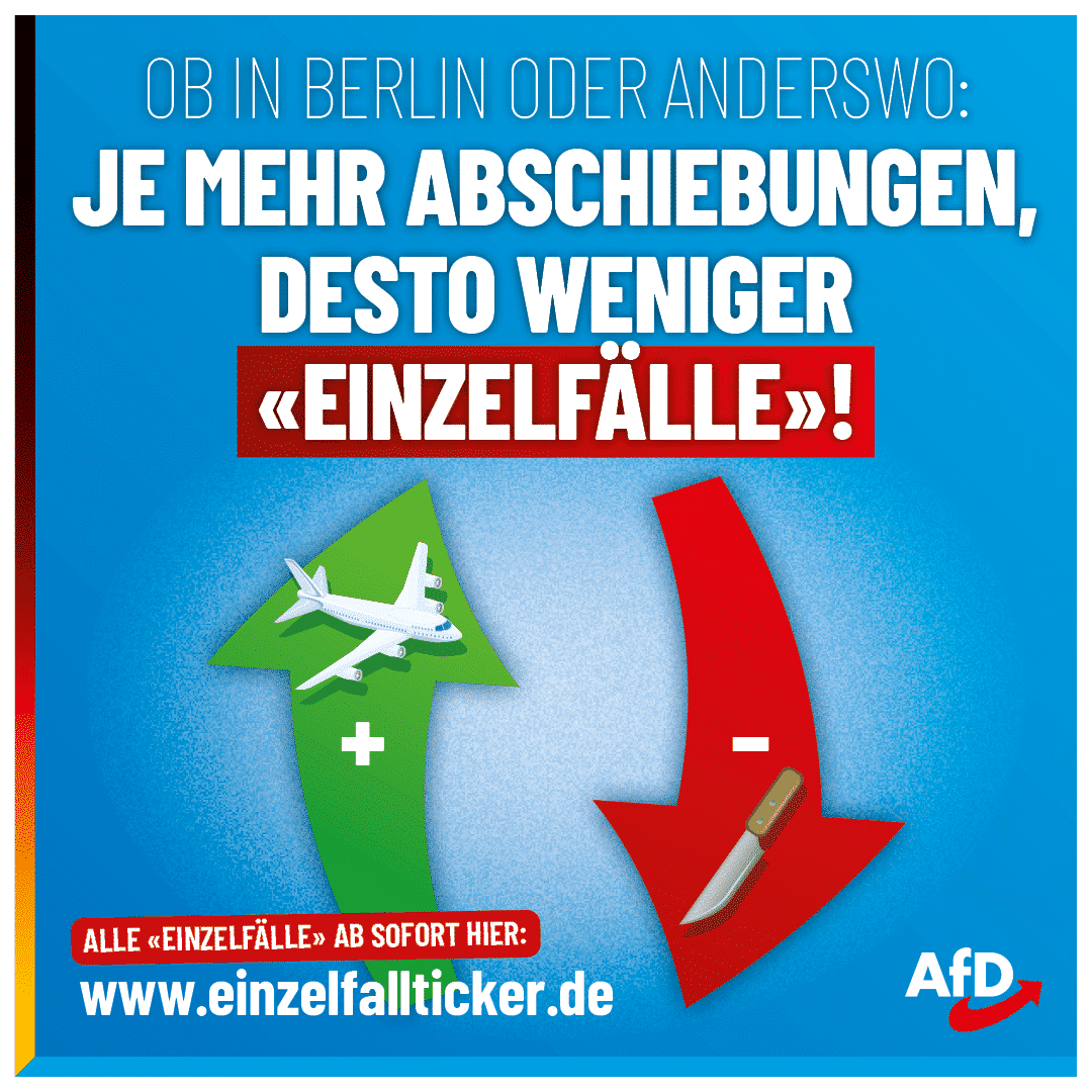 Zurück zu AfD: Ob in Berlin oder anderswo: Je mehr Abschiebungen, desto weniger „Einzelfälle“!