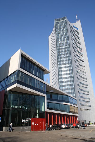 Das City-Hochhaus der Universität Leipzig mit Mensa am Park Bild: JesterWr / de.wikipedia.org