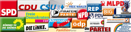 Logos div. Parteien (von Part=Teil): Parteien vertreten immer Einzelinteressen und können niemals dem Allgemeinwohl dienen...