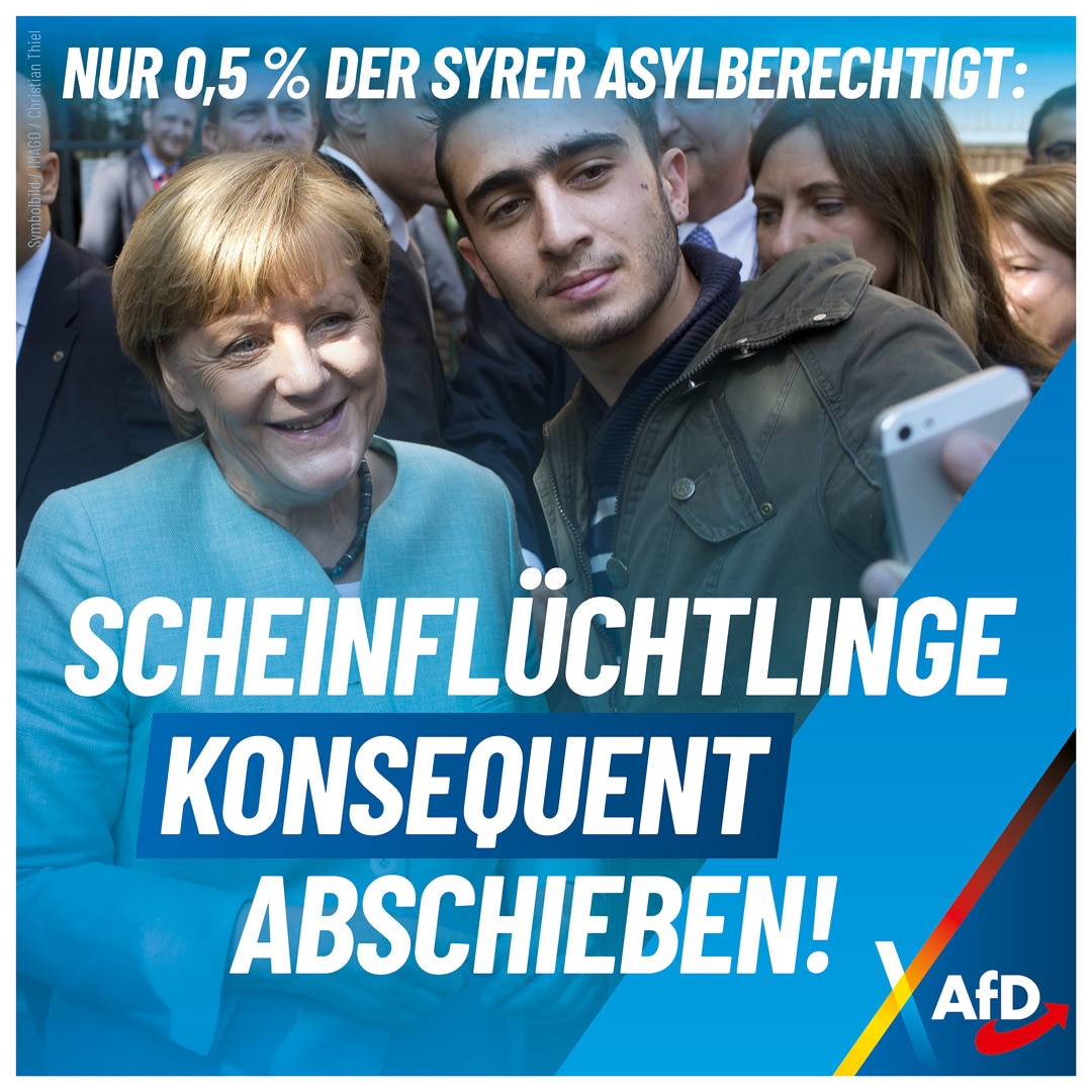 Zurück zu AfD: Nur 0,5 % der Syrer asylberechtigt: Scheinflüchtlinge konsequent abschieben!