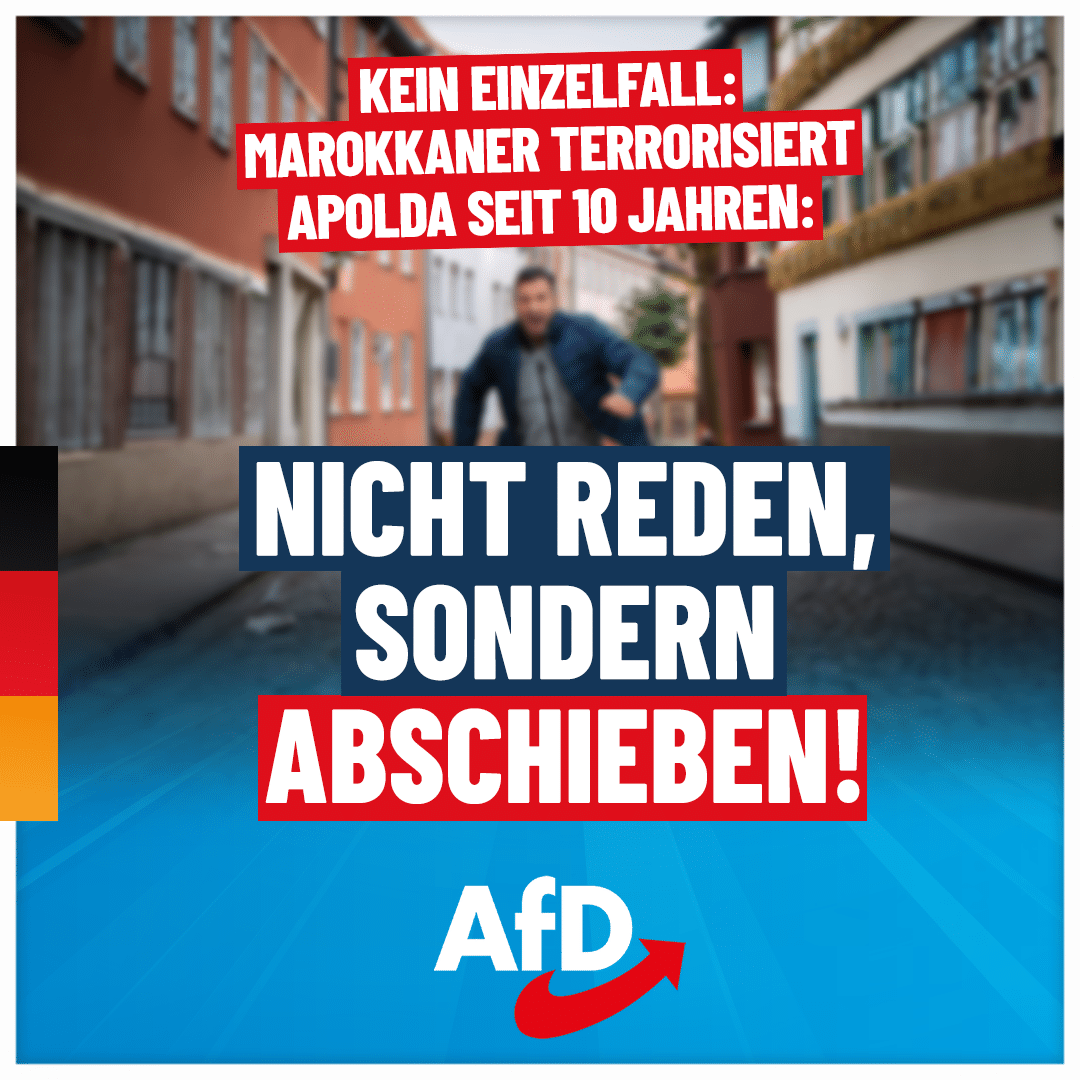 Zurück zu AfD: Marokkaner terrorisiert Apolda seit 10 Jahren: Nicht reden, sondern abschieben!