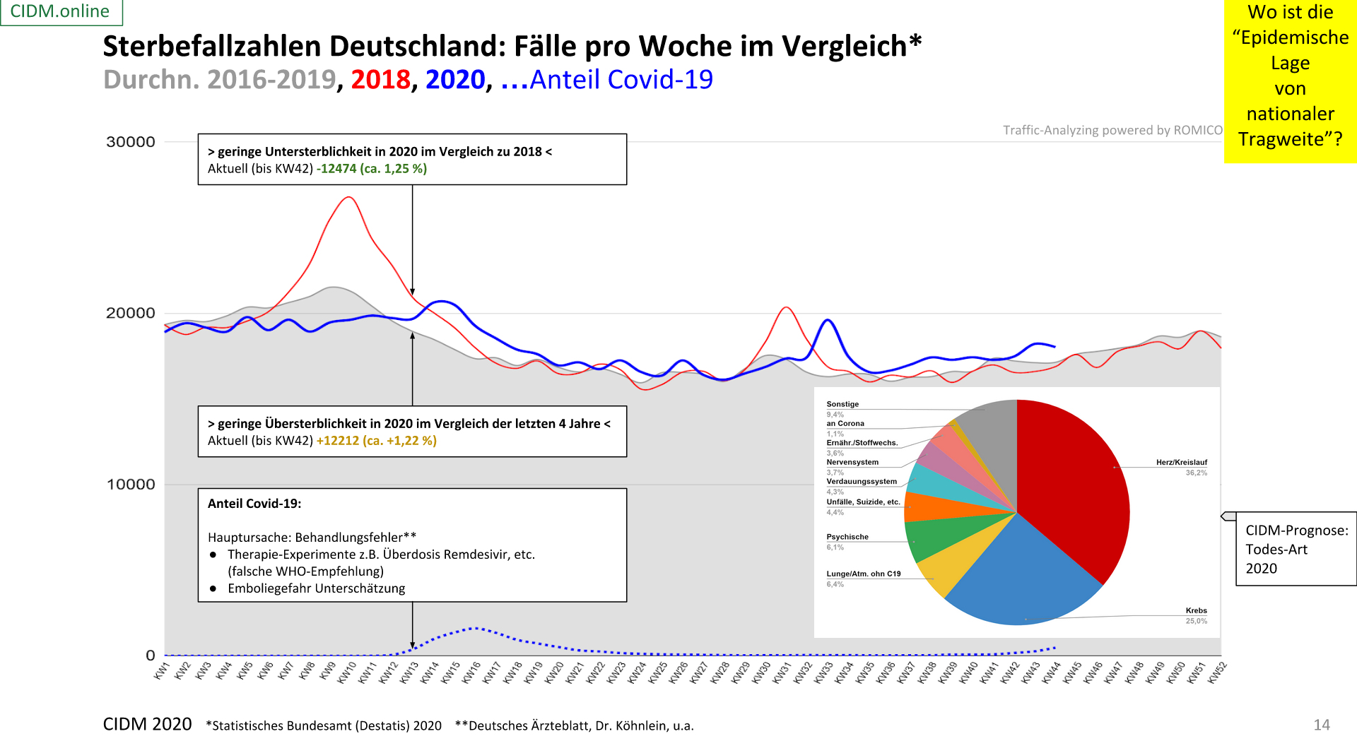 Sterbefallzahlen Deutschland: Fälle pro Woche im Vergleich der Jahre 2016 bis 2020 inkl. Anteil Covid-19: Wo ist die Pandemie? Stand 31.10.2020