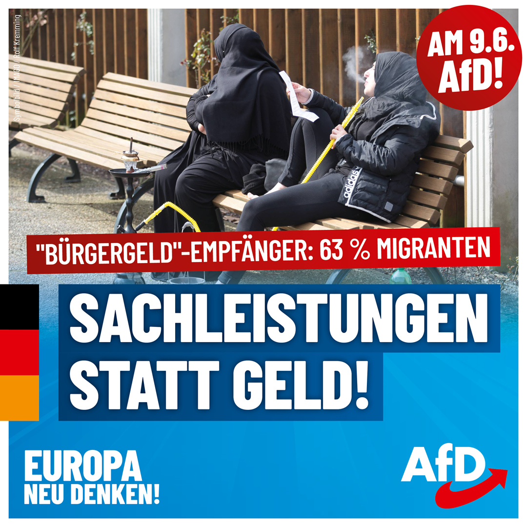 Zurück zu AfD: 63% der Bürgergeld-Empfänger sind Migranten: Sachleistungen statt Geldleistungen!