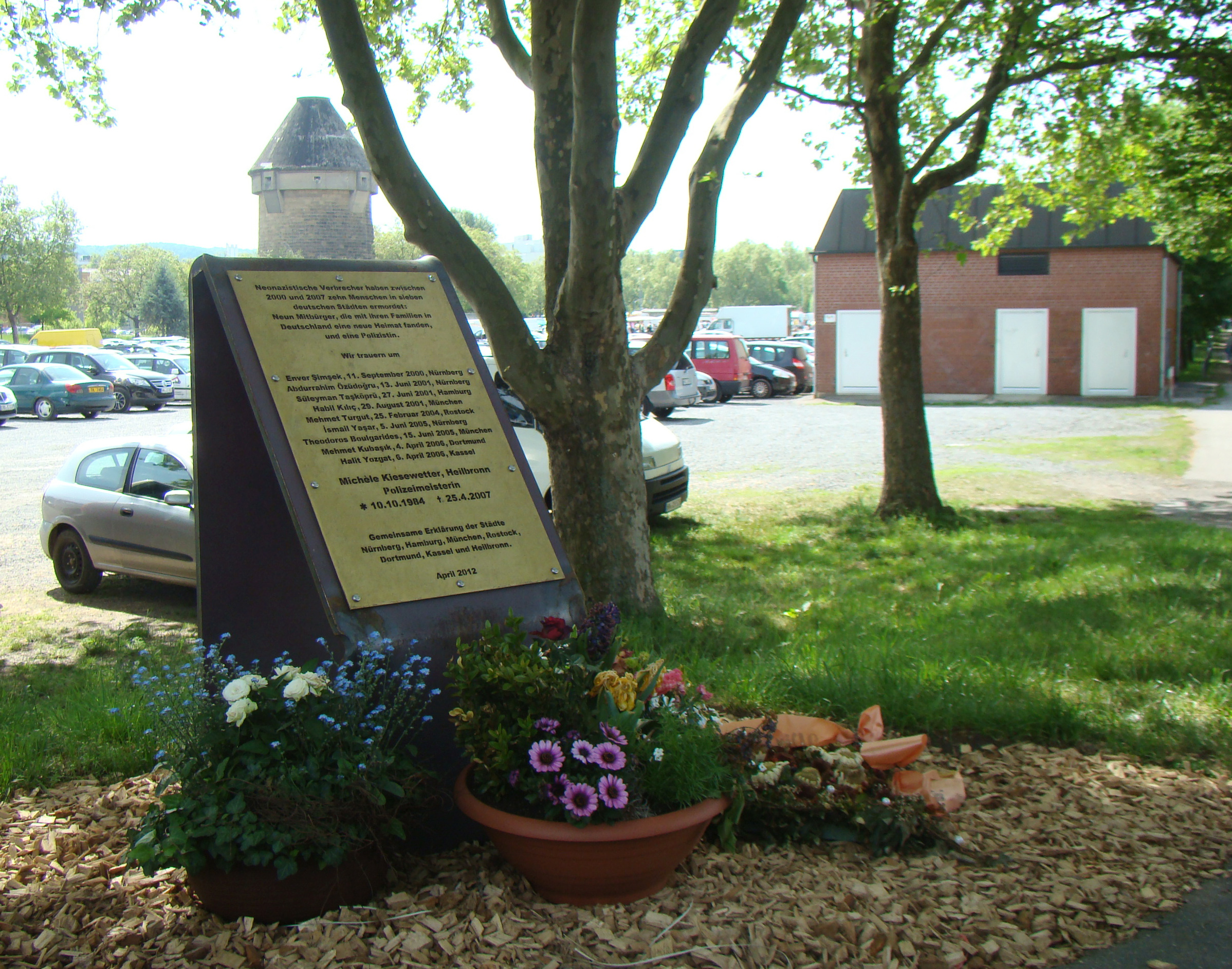 Gedenktafel für die Opfer der NSU-Gewalttaten am Tatort des Polizistenmords von Heilbronn