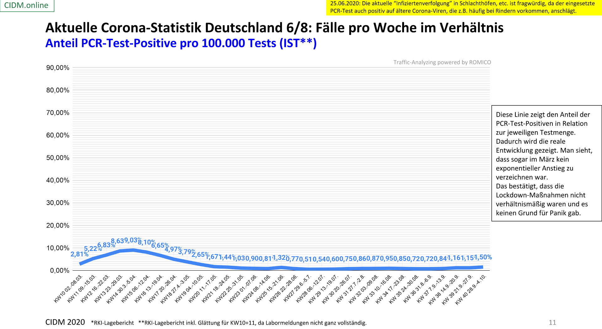 Anteil PCR-Test-Positive pro 100.000 Tests in Prozent, Stand 04.10.2020