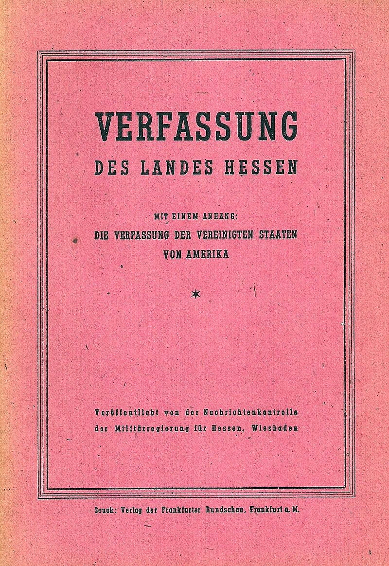 Titelblatt (rot) der Publikation der Verfassung des Landes Hessen durch die (US-)Militärregierung für Hessen