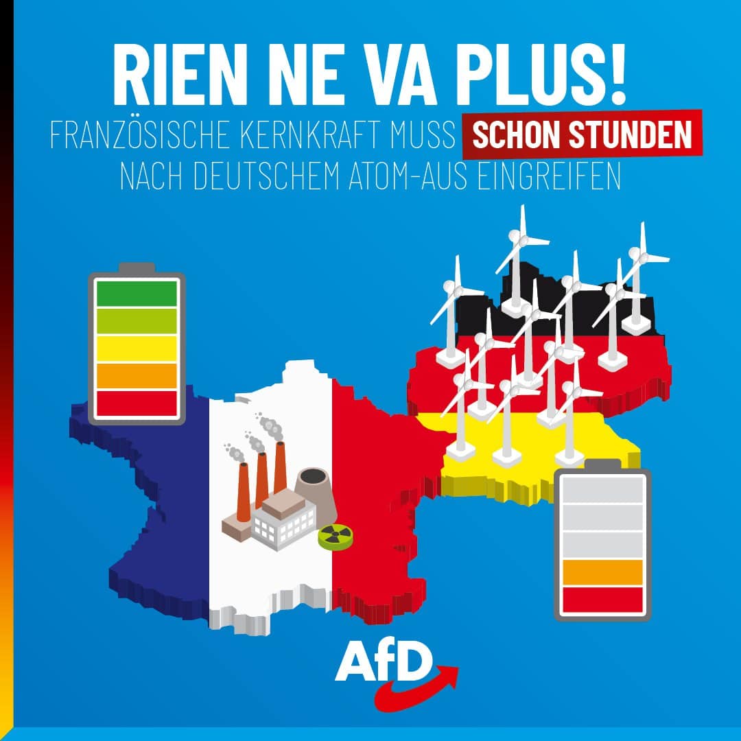 Zurück zu AfD: Französische Kernkraft muss schon Stunden nach deutschem Atom-Aus eingreifen