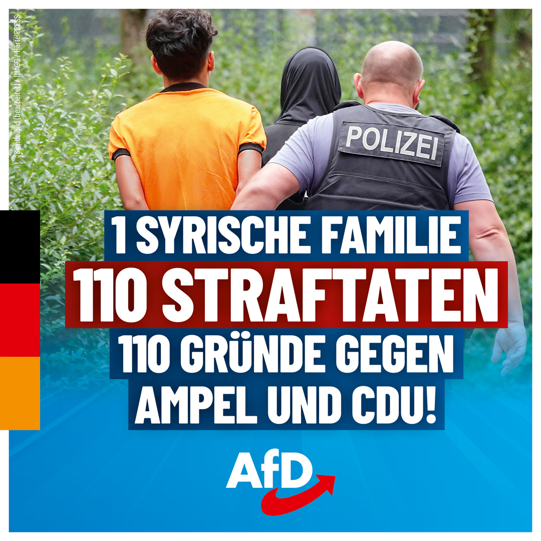 Zurück zu AfD: Eine syrische Familie, 110 Straftaten, 110 Gründe gegen Ampel und CDU!