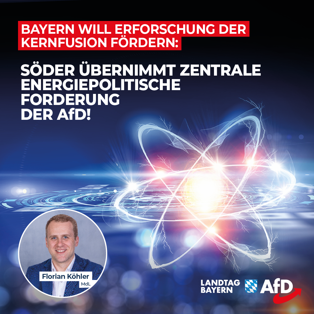 Zurück zu Florian Köhler: Bayern will Erforschung der Kernfusion fördern – Söder übernimmt zentrale energiepolitische Forderung der AfD!