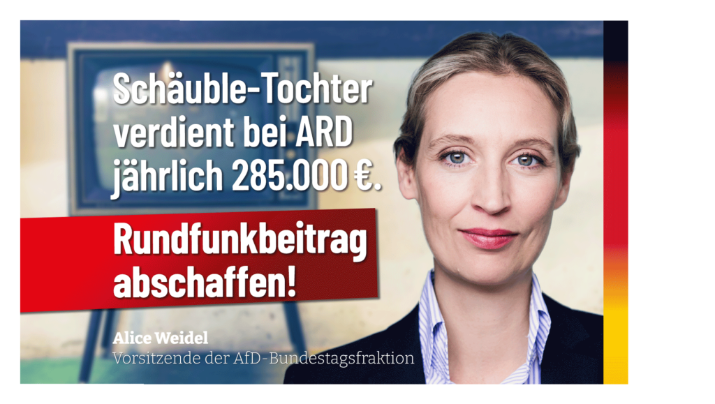 Zurück zu Weidel: Schäuble-Tochter verdient bei ARD jährlich 285.000 Euro – Rundfunkbeitrag abschaffen!