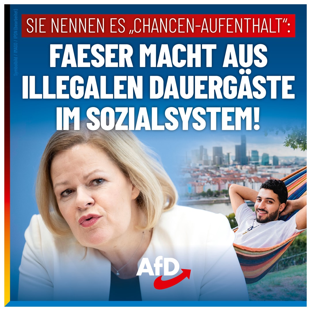 Zurück zu AfD: Sie nennen es „Chancen-Aufenthalt“: Faeser macht aus Illegalen Dauergäste im Sozialsystem!