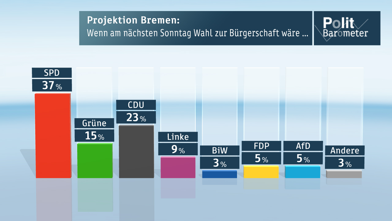 Zurück zu ZDF-Politbarometer Extra Bremen April 2015: Bürgermeister Böhrnsen unangefochten vorne - FDP und AfD bei 5 Prozent