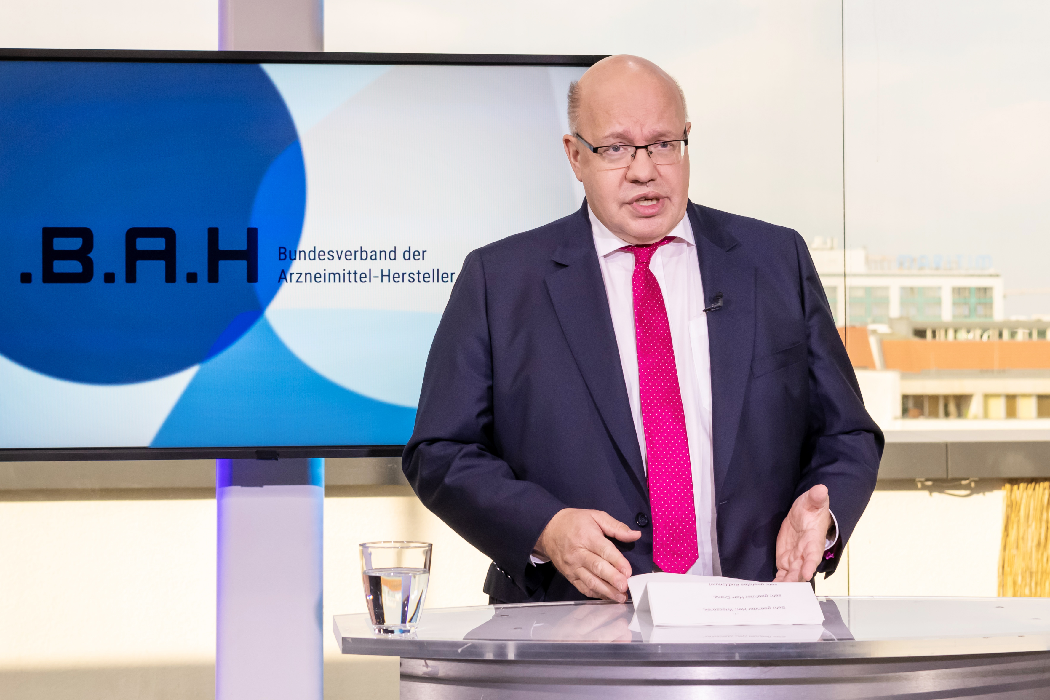Bundeswirtschaftsminister Peter Altmaier spricht auf der digitalen Mitgliederversammlung des BAH. Bild: "obs/BAH / Svea Pietschmann"