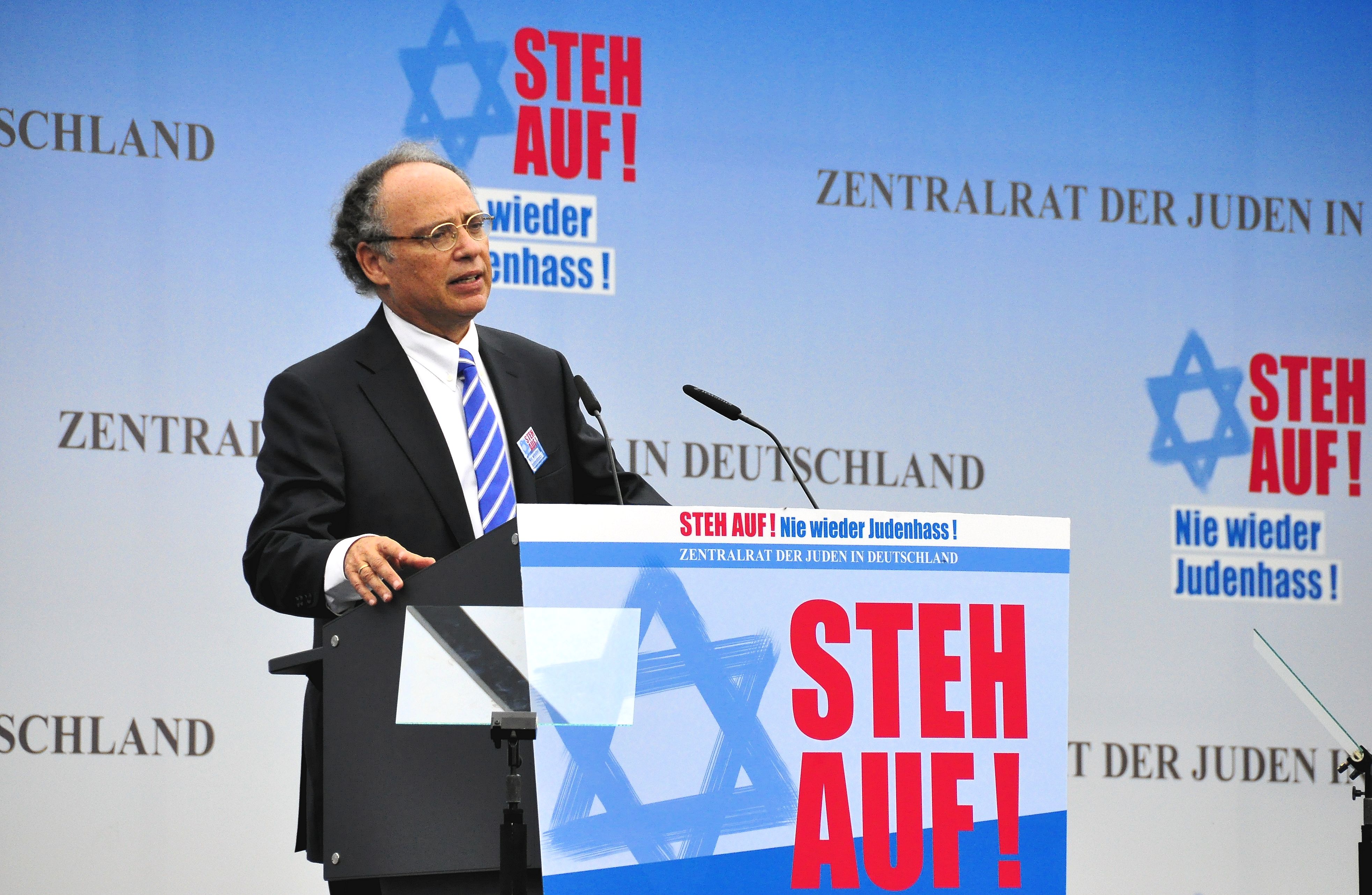 Dieter Graumann spricht auf einer Kundgebung gegen Judenhass in Berlin, September 2014