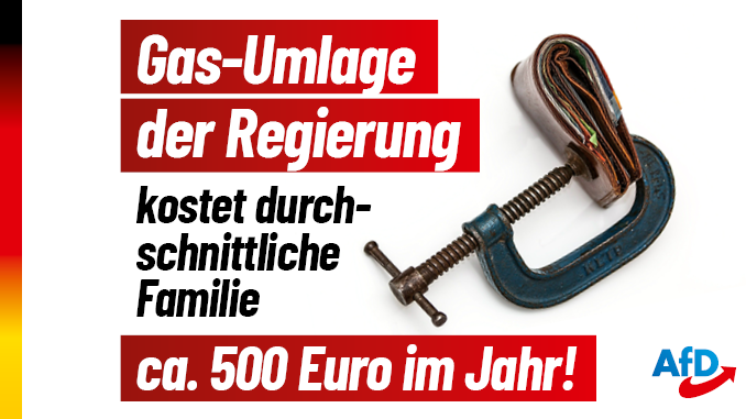 Zurück zu AfD: Gas-Umlage der Regierung kostet durchschnittliche Familie ca. 500 Euro im Jahr!