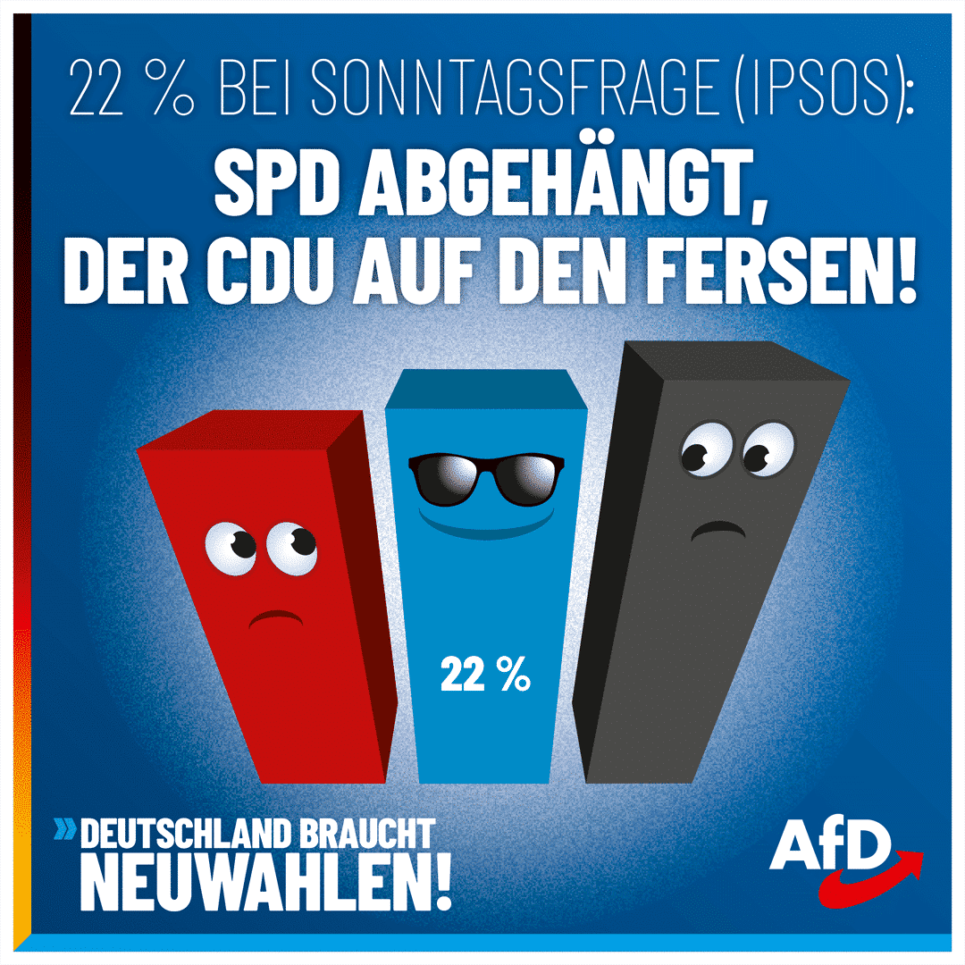 Neuer Umfrage-Rekord: AfD bundesweit bei 22 Prozent!