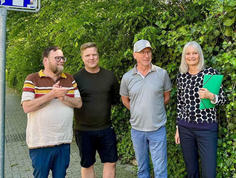 Auf dem Bild von Links; Daniel Dürkop (Ratsherr), Rasmus Raun (Elternvertreter Kindergarten Ingrid-Hjemmet), Michael Wolhardt (Leiter Sortevej Børne og Ungdomshus), Pernille Hansen Brown (Schulleiterin Cornelius Hansen Skole) Bild: SSW