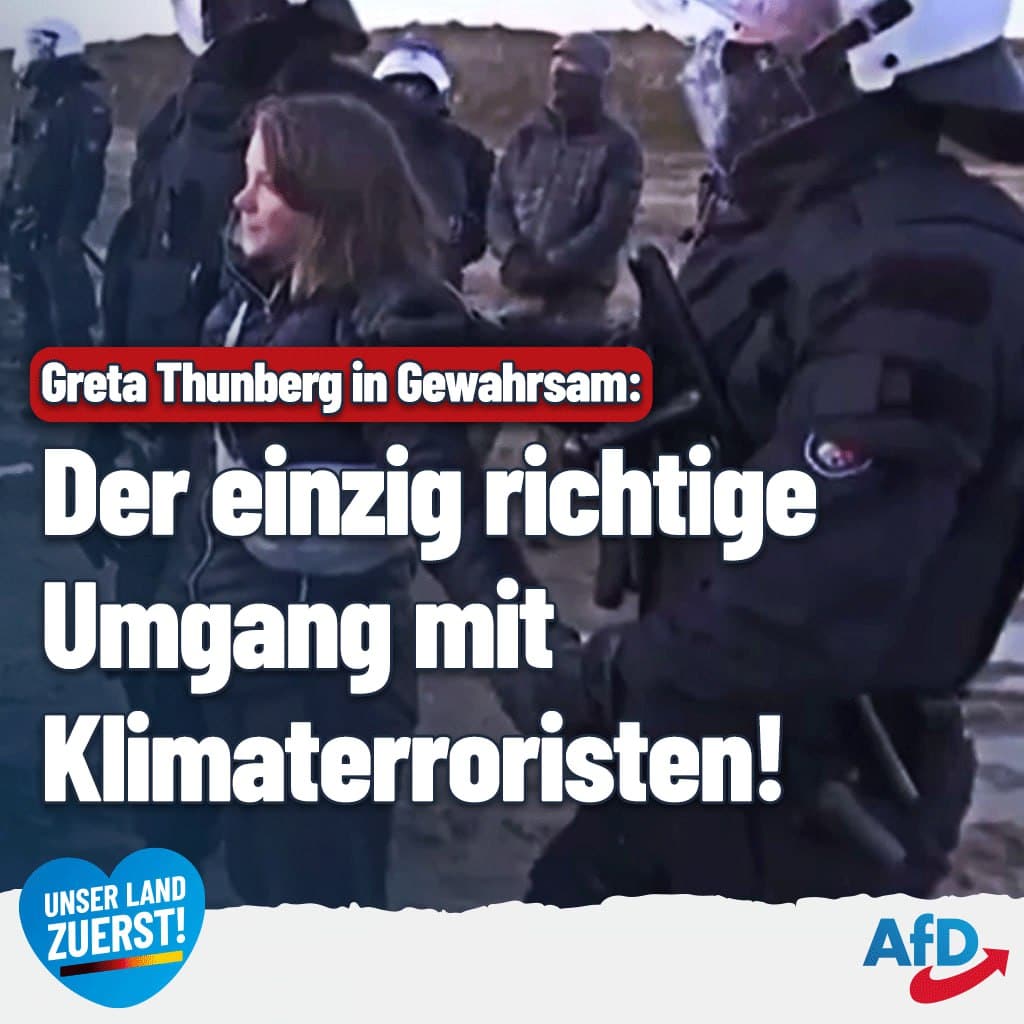 Zurück zu AfD: Greta Thunberg in Gewahrsam: Der einzig richtige Umgang mit Klimaterroristen!