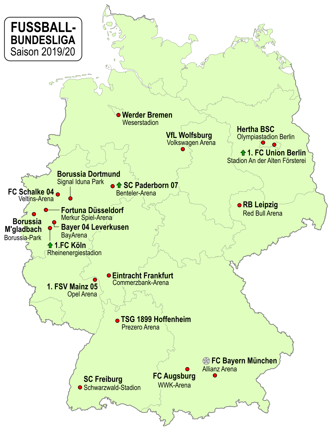 Teilnehmende Vereine der Bundesliga 2019/20