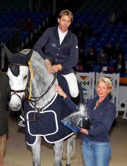 Siegerehrung mit dem Gewinner der 1. Qualifikation Illbruck-Poresta Youngster-Cup: Markus Renzel mit Cornetta. Bild: Thomas Hellmann / Comtainment GmbH