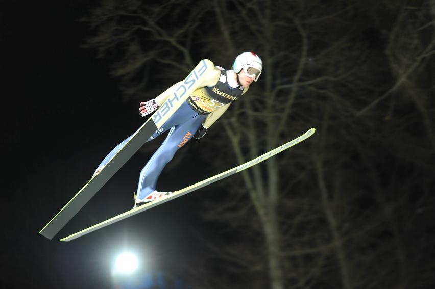 Simon Ammann beim Qualifikationssprung- Bild: Kurt U. Heldmann / Plus.de - FIS-Team-Tour 2012