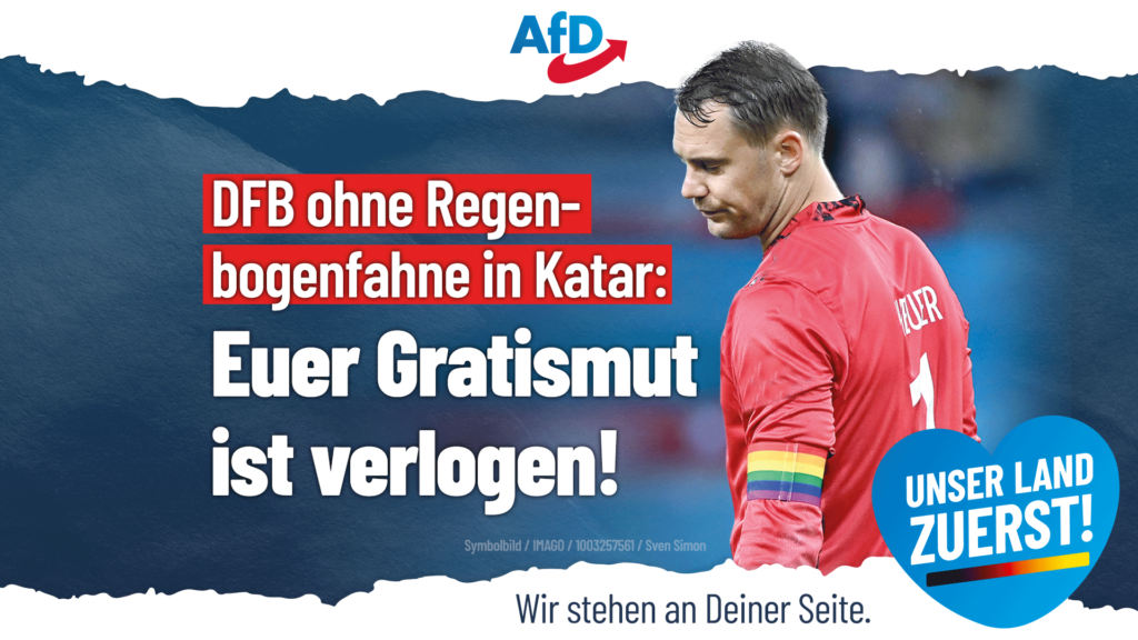 Zurück zu AfD: DFB ohne Regenbogenfahne zur WM in Katar: Euer Gratismut ist verlogen!