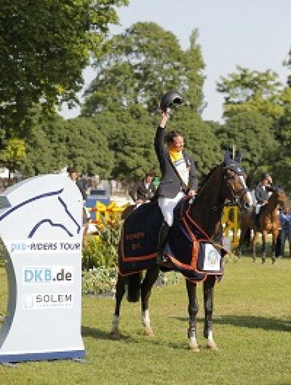 Toni Haßmann und Classic Man gewinnen die 3. Etappe der DKB-Riders Tour in Wiesbaden. Bild: "obs/Riders Tour GmbH/Stefan Lafrentz"