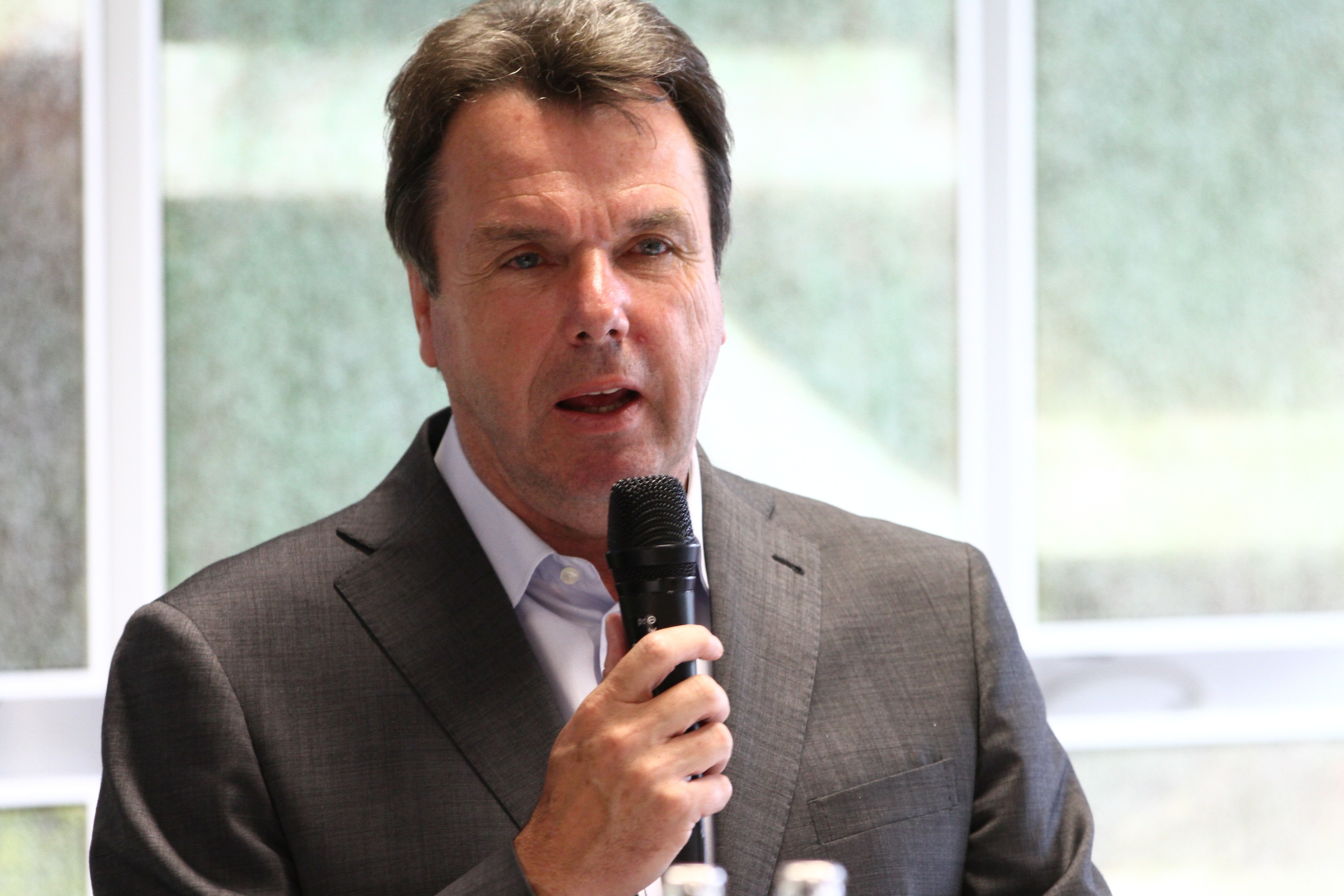 Heribert Bruchhagen 2011 bei der Vorstellung der neuen sportlichen Leitung von Eintracht Frankfurt
