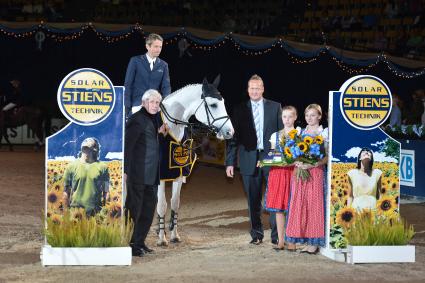 Carsten-Otto Nagel mit Corradina. Es gratulieren Paul Schockemöhle und Georg Stiens. Bild: "Karl-Heinz Frieler - obs/Comtainment GmbH"
