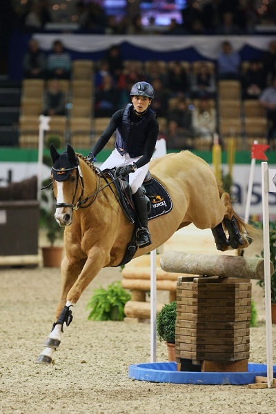 Die Halle tobte als es für Louise Svensson Jähde auf Maybach über die Naturhindernisse im Zeitspringen der Kl. M** ging! Bild: obs/Comtainment GmbH/Stefan Lafrentz